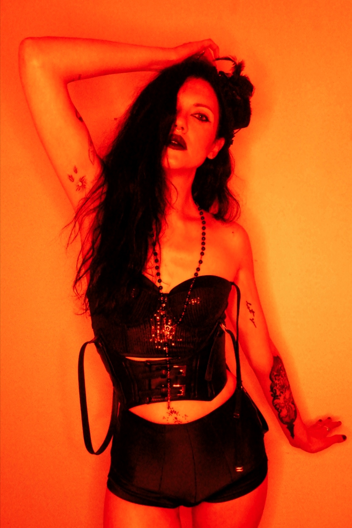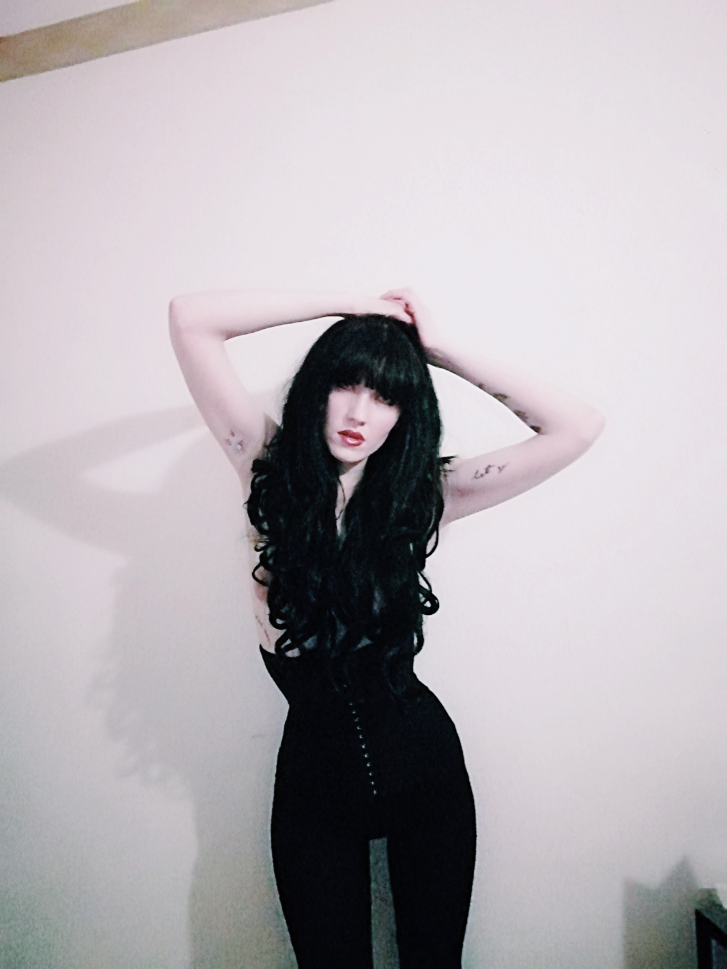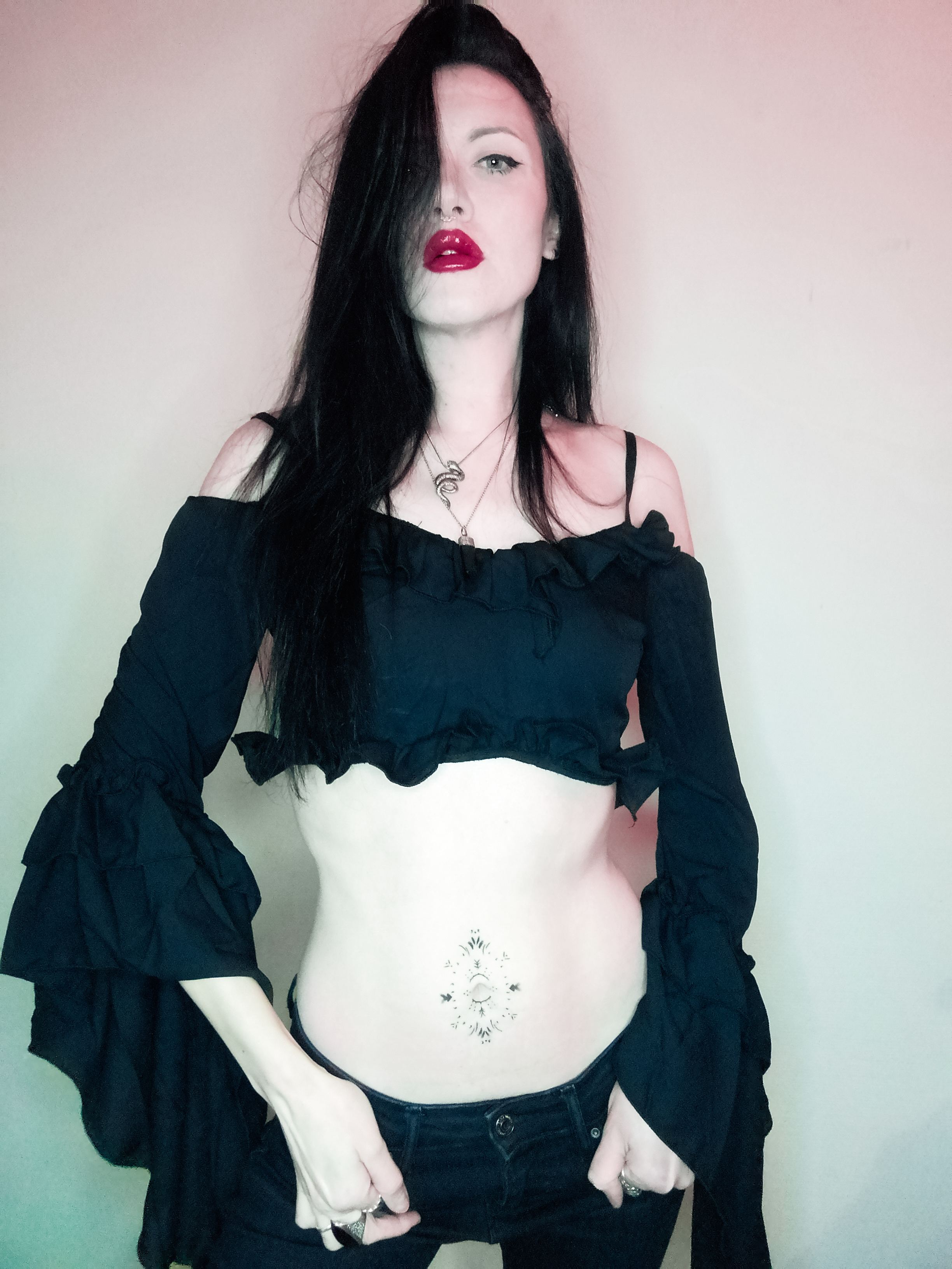 “Mistress of the night. Meet Starla”, phone photography and photo retouching apps, 2021. Harness by Little Devil’s Creations.