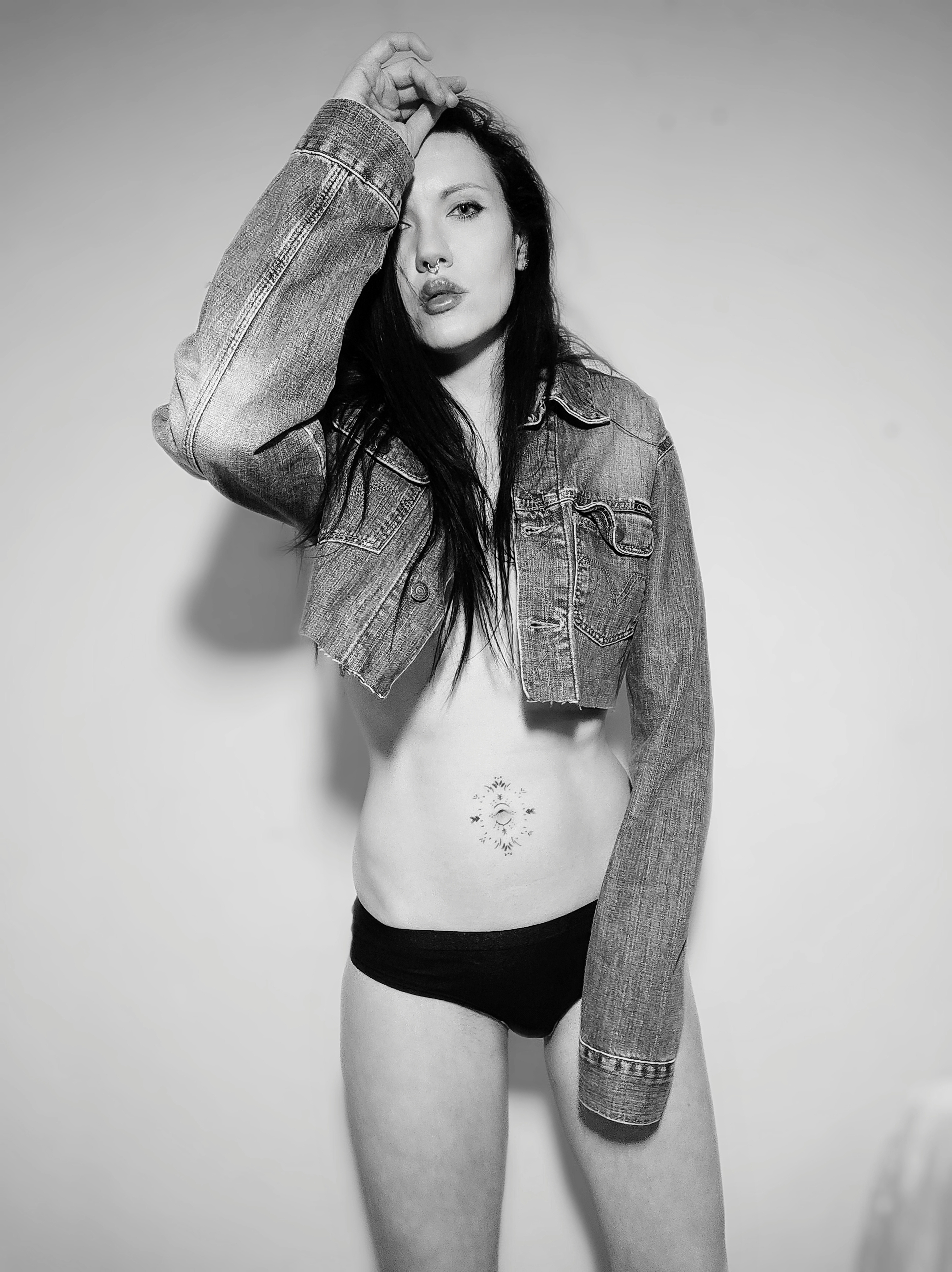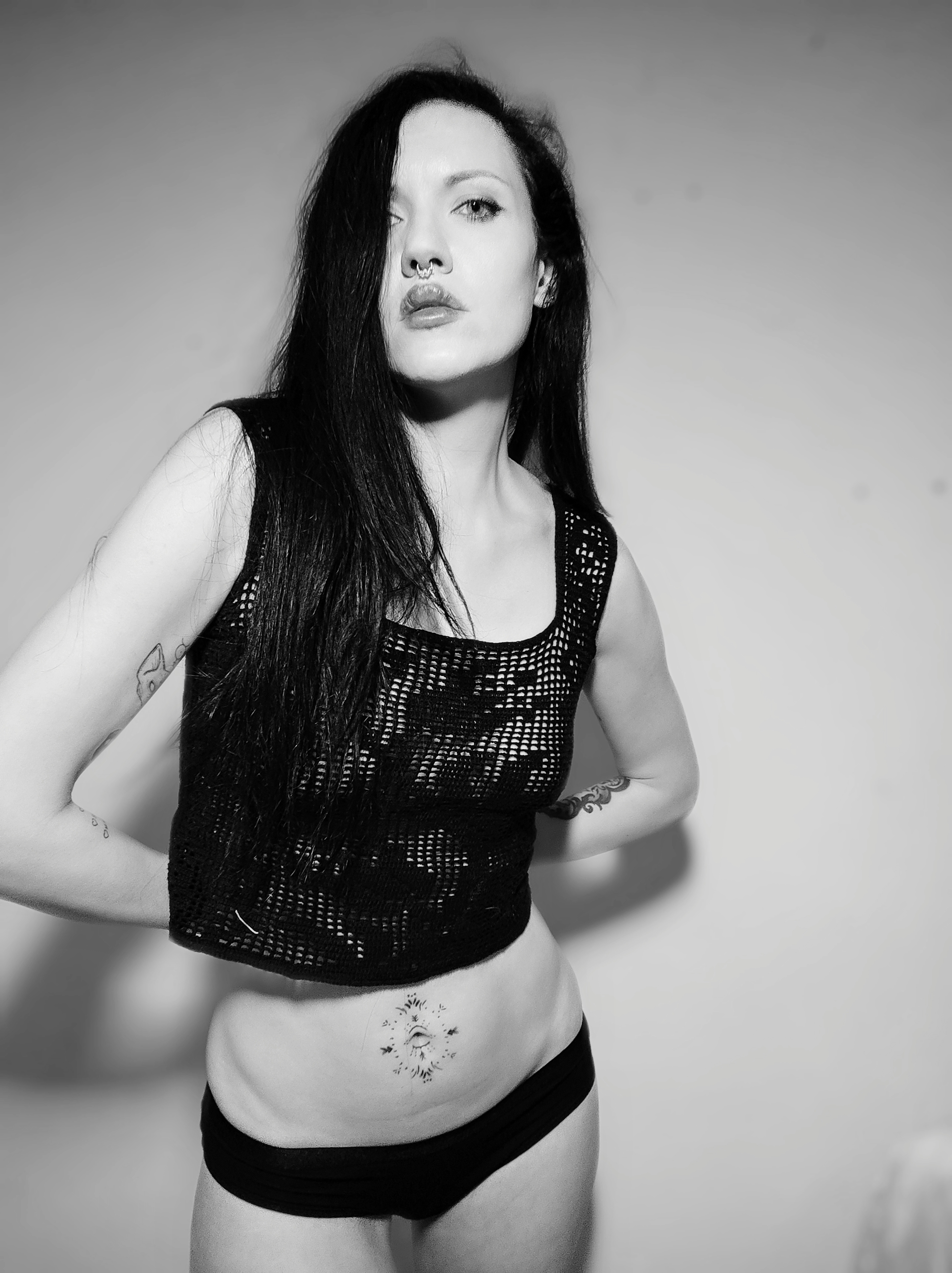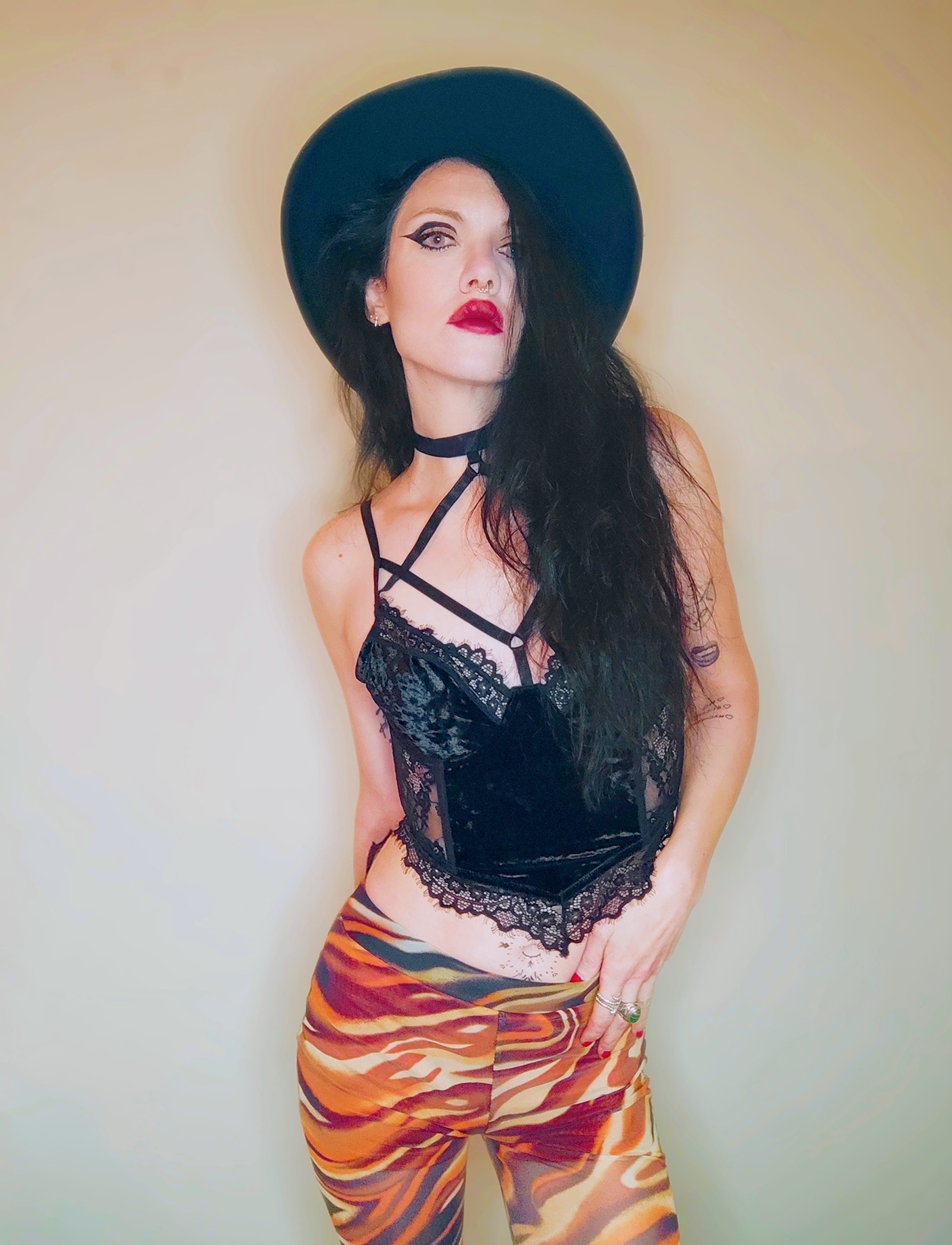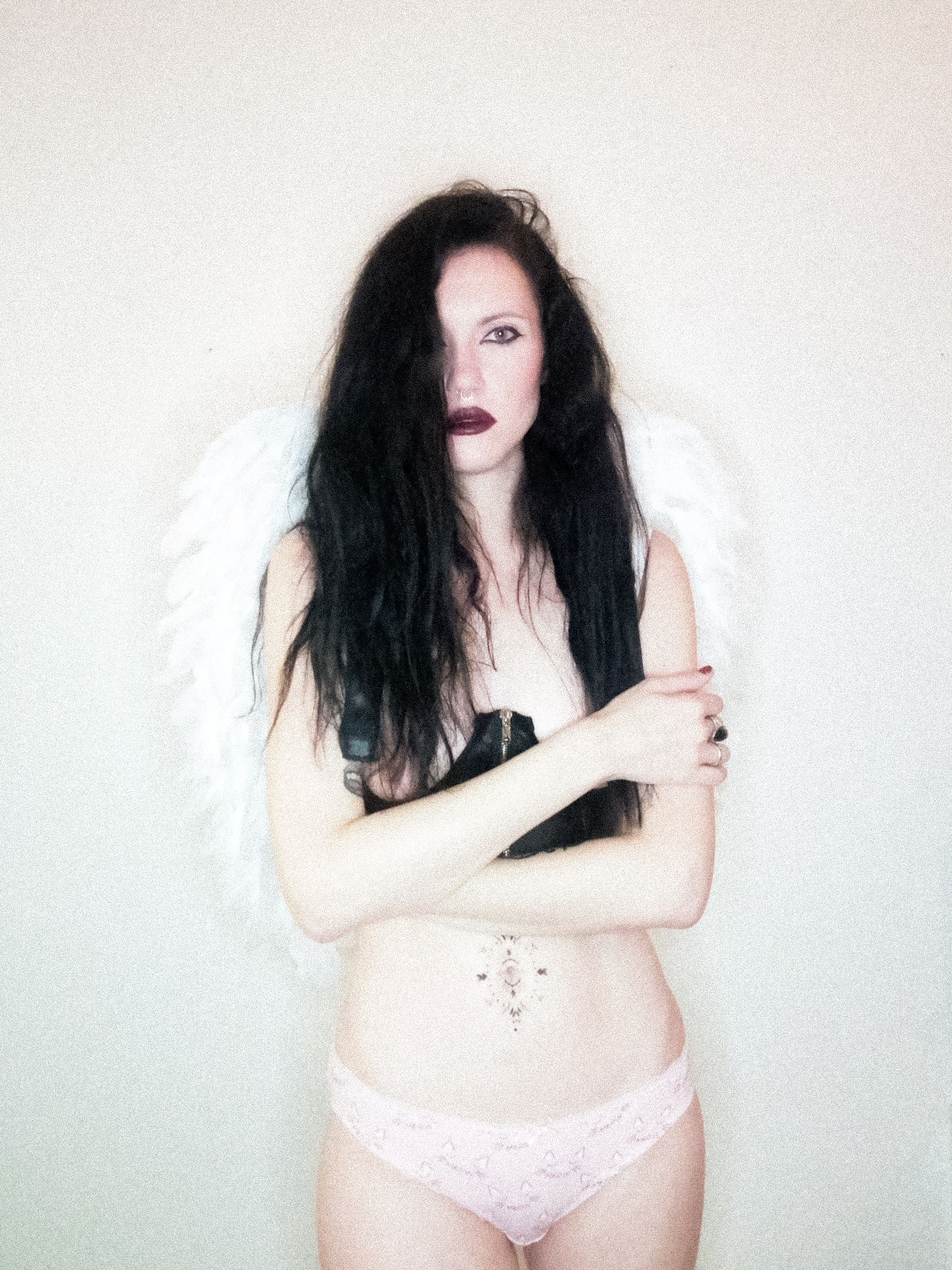 “Mistress of the night. Meet Starla”, phone photography and photo retouching apps, 2021. Harness by Little Devil’s Creations.